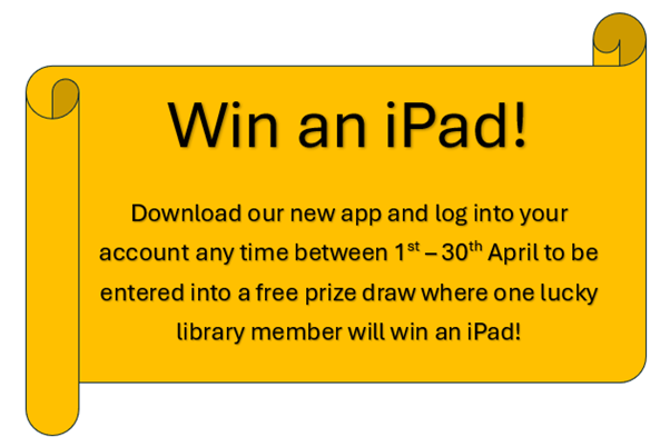 Great news, we’re giving one lucky library member the chance to win an iPad! To enter, simply download or update the new Harrow Library App and sign in with your library membership between 1st - 30th April.